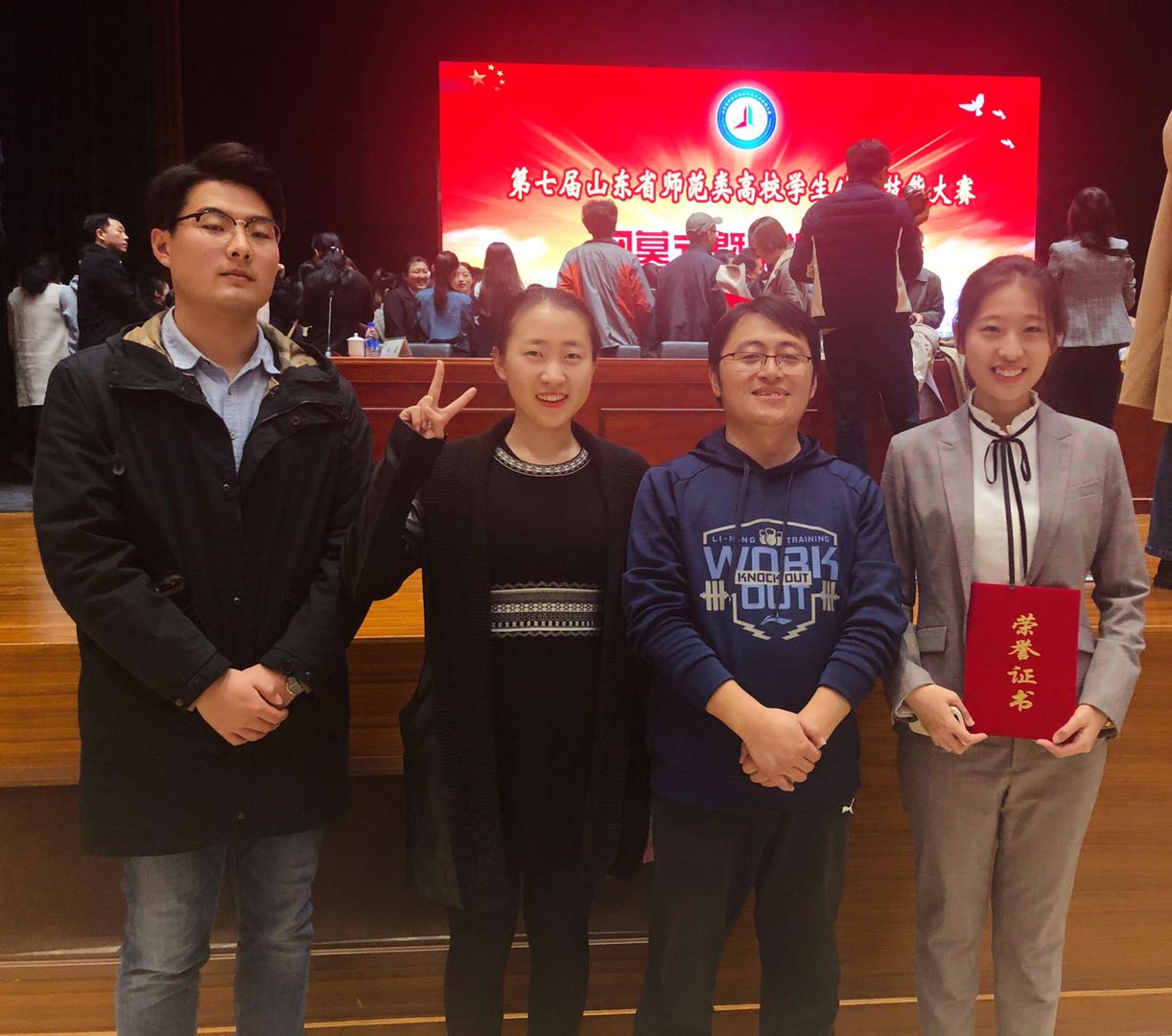 11月8-9日,第七届山东省师范类高校学生从业技能大赛省级决赛于在鲁东大学举行。经过2天激烈角逐,我院4名参赛同学再创佳绩。数学与应用数学(师范)专业2016级于梦琪以初中推荐组全省第一名的成绩获一等奖,史福涛、李暖获高中和初中抽取组二等奖,姜筱筱获高中推荐组三等奖。严文海老师获“优秀指导老师”称号。至此,主播大秀